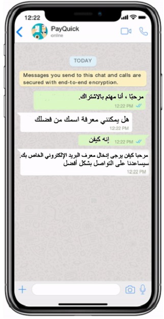 أرسل أو تي بي المعروضة على الشاشة إلى رقم واتس أب المحدد